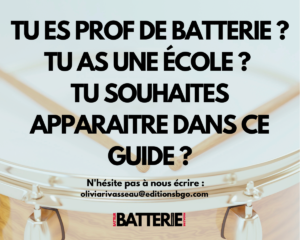 Un contact est obsolète ou nécessite une mise à jour ? Vous enseignez la batterie, vous avez une école et vous souhaitez apparaître dans ce guide? N’hésitez pas à nous écrire : [email protected]